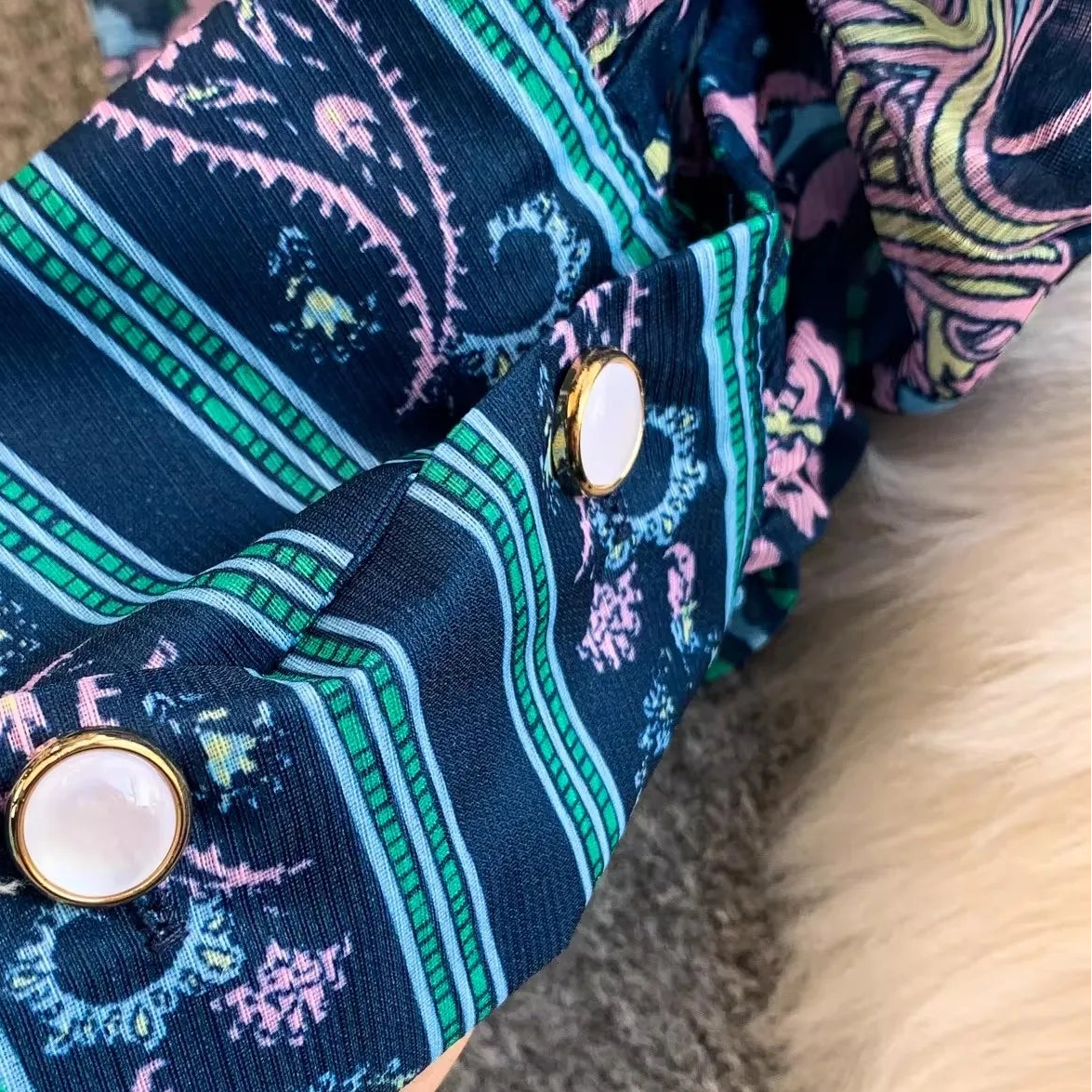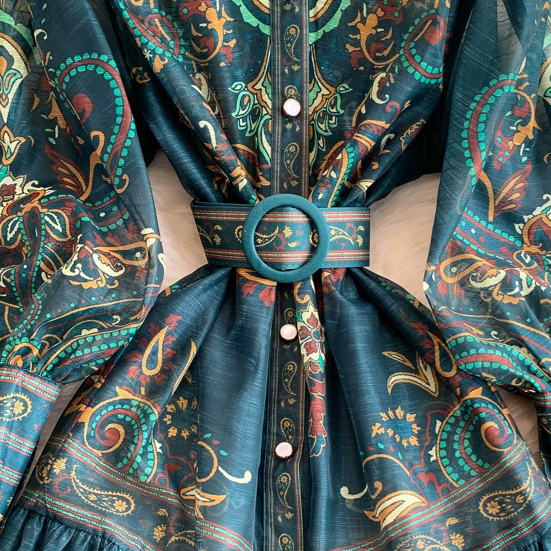 Sleeves: Statement lantern sleeves with buttoned cuffs.
